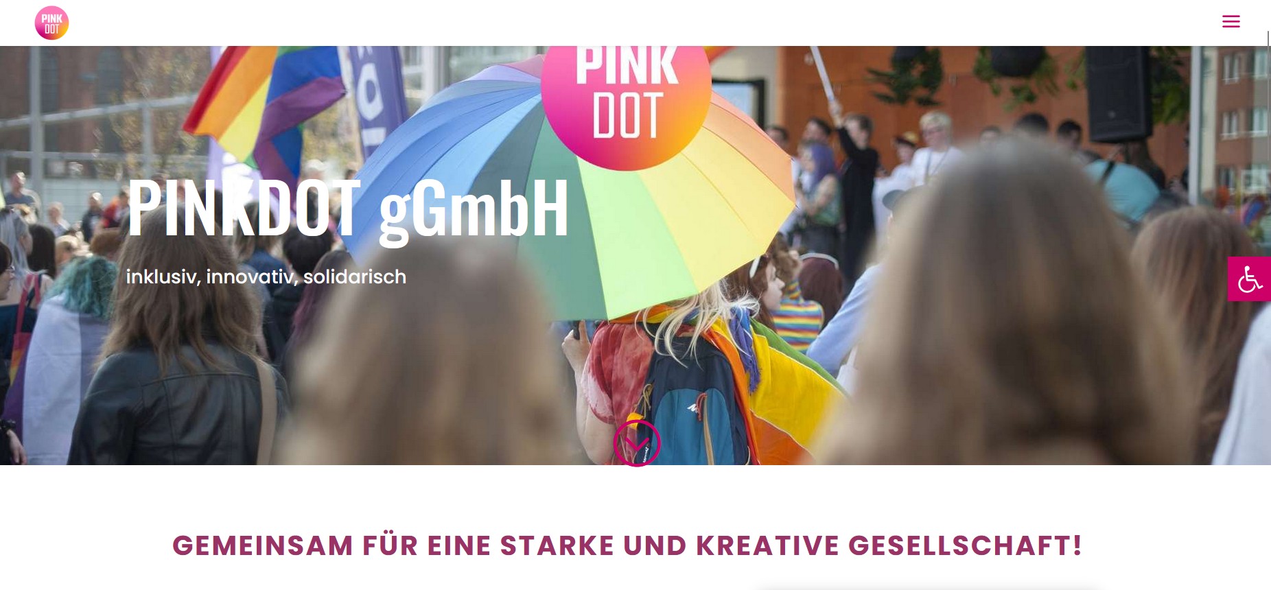 Die PINKDOT gGmbH ist eine gemeinnützige Organisation, die sich für inklusive Kulturprojekte und gesellschaftliche Teilhabe einsetzt. Mit kreativen Formaten bringt sie Kunst, Bildung und Aktivismus zusammen und schafft Räume für vielfältige Perspektiven. Im Mittelpunkt stehen Empowerment, Partizipation und eine diskriminierungskritische Praxis.